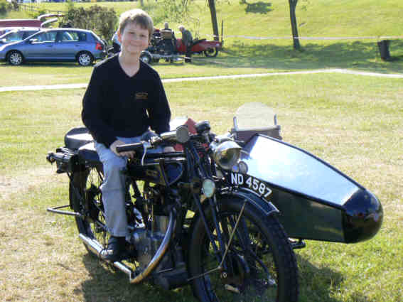 Sam Scale sat on his father's 1924 New Scale motorcycle, not long before he will be riding it that's for sure.